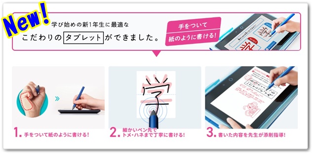 「新1年生用特別タブレット」と謳っているけど、他の学年も順次この新型になっていくのかな?とにかく新1年生は最新式が手に入るみたいです!