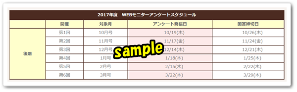 アンケートは不定期開催です。同月に複数回のアンケートが実施されることもあれば、アンケートの実施自体がない月もあります。