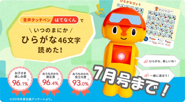 「はてなくん」をゲットできるのは7月号が最終!なので、「こどもちゃれんじほっぷ」の場合は7月号から受講するのがおススメ!