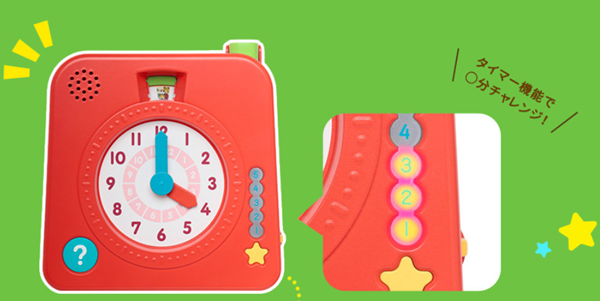 幼稚園出発までに支度を済ませるなど時間を意識して行動したり、毎日決まった時間に寝るなど生活リズムを整えたり、子供が自ら時間管理を意識し始めるきっかけとなりました。また、最新版では「タイマー機能」が付き、「3分間でお着替えにちゃれんじ!」「5分以内にお片付け完了!」など、遊び感覚で時間を意識することができるようになります。
